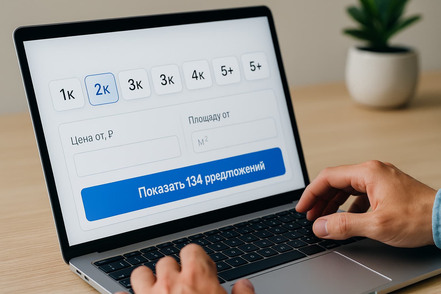 Пользователь нередко меняет критерии на ходу — из «двушки» превращается в «трёшку», если видит, что разница в цене небольшая. Поэтому переключатель комнатности должен работать мгновенно и без перезагрузки — это позволяет экспериментировать и играть с фильтрами, не теряя контекста.